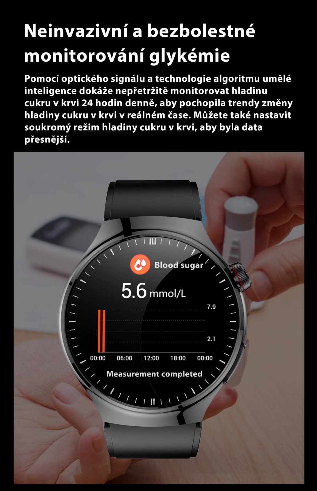 Nyní dokáže neinvazivně a přesně detekovat 36 údajů, jako je glukometr, kyselina močová, krevní tlak a kyslík v krvi.